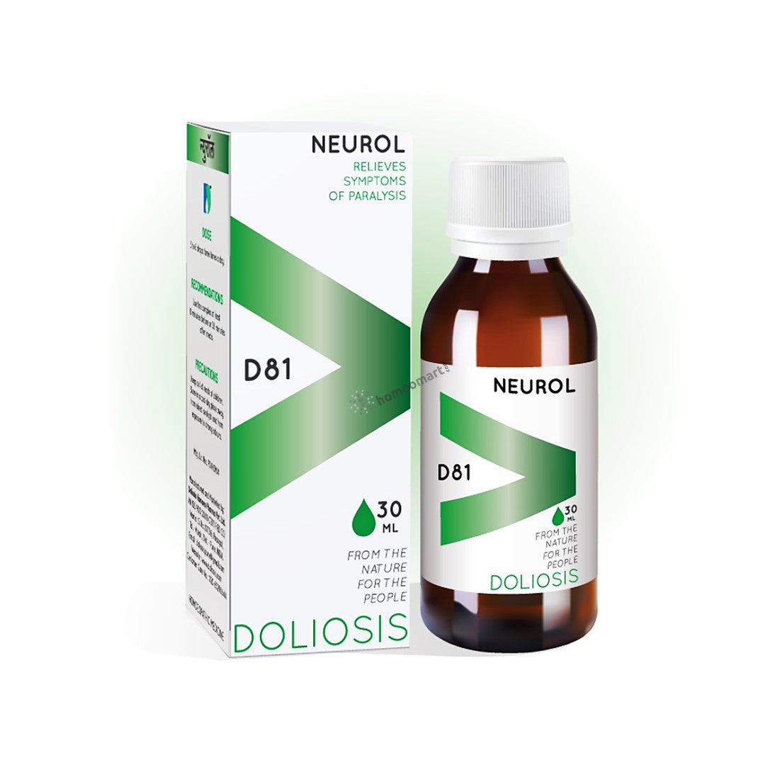 Doliosis D81 Neurol Drop is a homoeopathic blend used to address minor muscle illnesses characterized by lethargy and disorientation. This blend may be useful in treating minor nerve inflammatory problems. It soothes muscle pain and trembling. Safe for use.