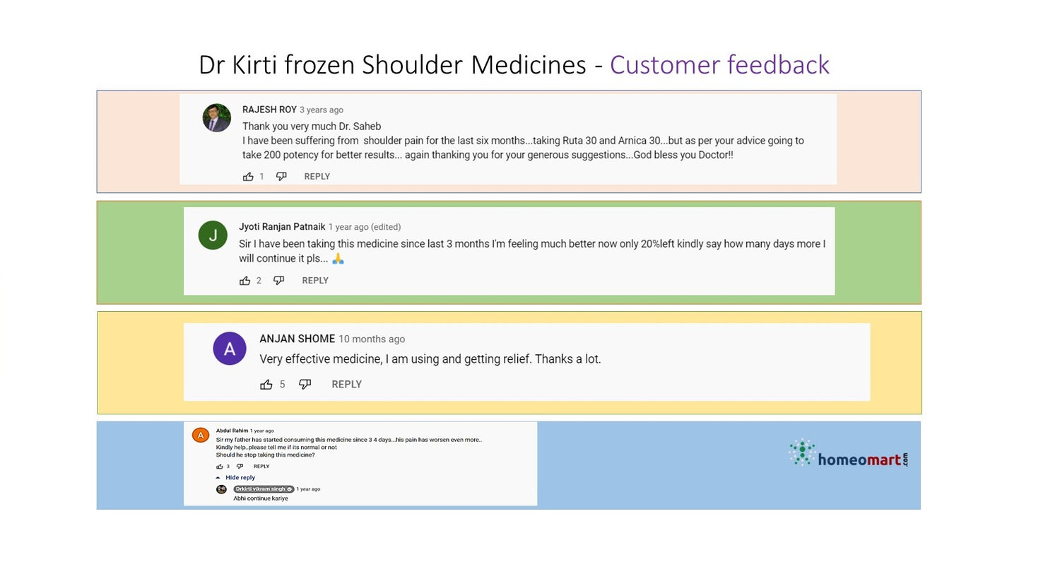 Dr. Kirti, a leading homeopath, combines internal medicines with external applications for effective frozen shoulder relief. Learn more in his YouTube video “Frozen Shoulder! Homeopathic Medicine for Frozen Shoulder?”