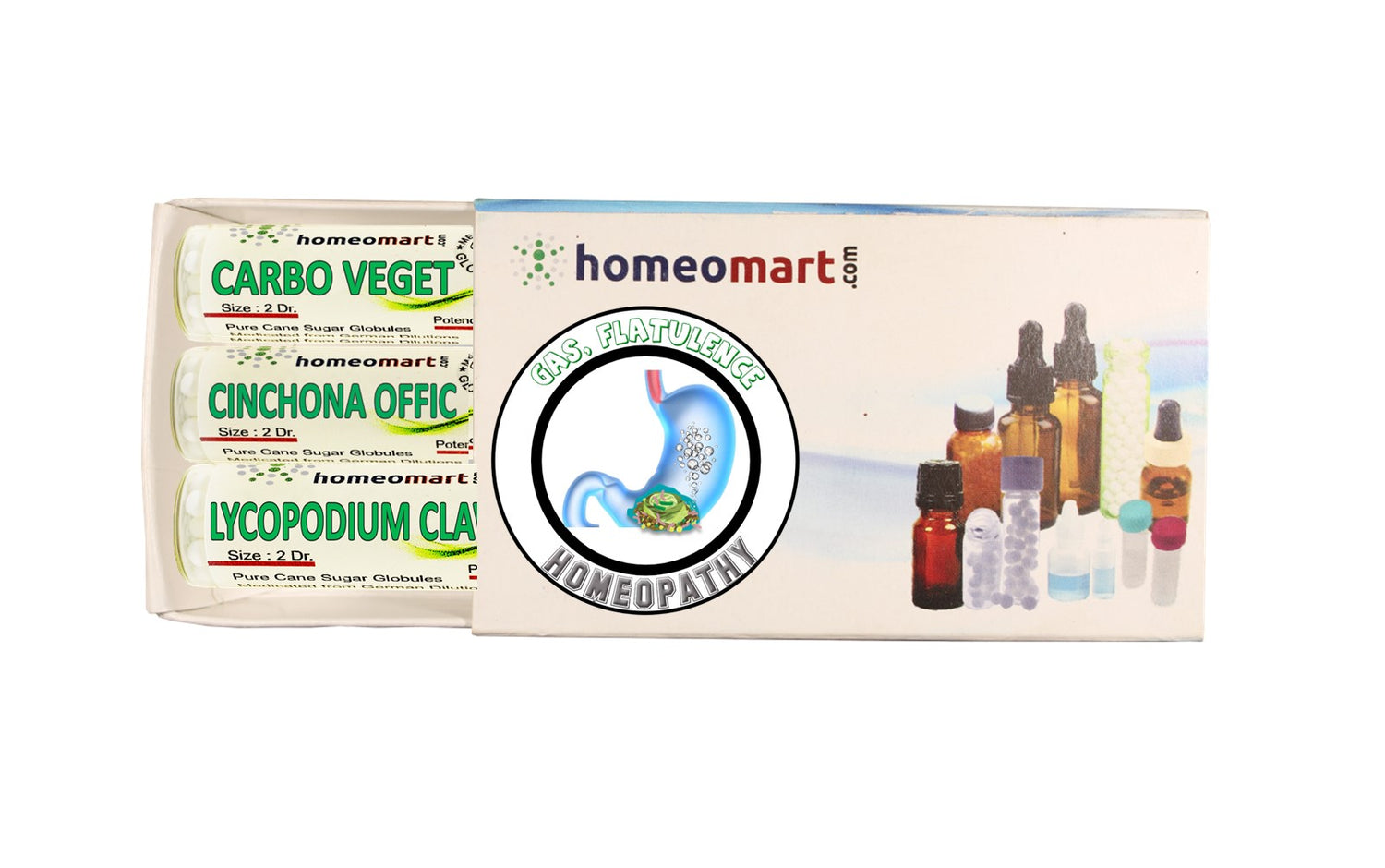 Lycopodium 30: Best suited for gas caused by fermented foods, cabbage, or beans. Symptoms include fullness, burning eructations that rise to the throat and cause prolonged burning, and a bloated and full abdomen. Dosage: Take three times a day for three days.