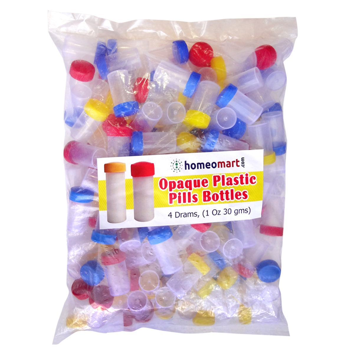 Opaque Super Plastic Pills Bottles for Homeopathy - 1/2, 1, 2, 4 Dram