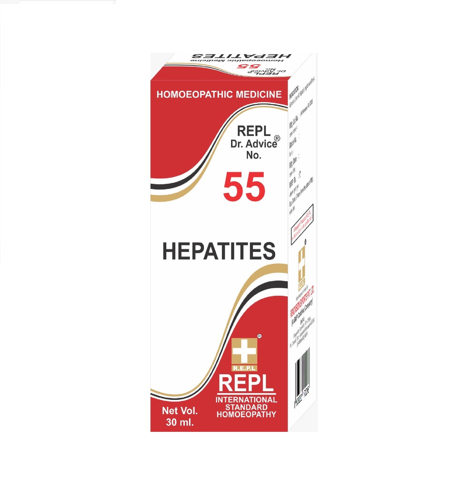 Indication- REPL Dr. Advice No. 55 HEPATITES is prescribed for the symptoms associated with Hepatitis. Its proven homeopathic formula protects the hepatic parenchyma and stimulates hepatocellular regeneration to improve the efficiency of the liver. The action of this medicine is centered on the Liver, and portal system, causing soreness, jaundice, and hepatic disease, covering many of the direct reflex symptoms of the disease.