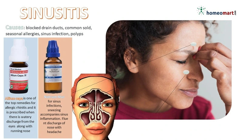 - Natrum Muriaticum 30: For sinus inflammation with sneezing and heavy nasal discharge.