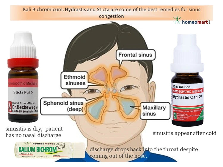 - Kali Bichromicum 30: Excellent for postnasal drip, thick yellow mucus, and nasal blockages.