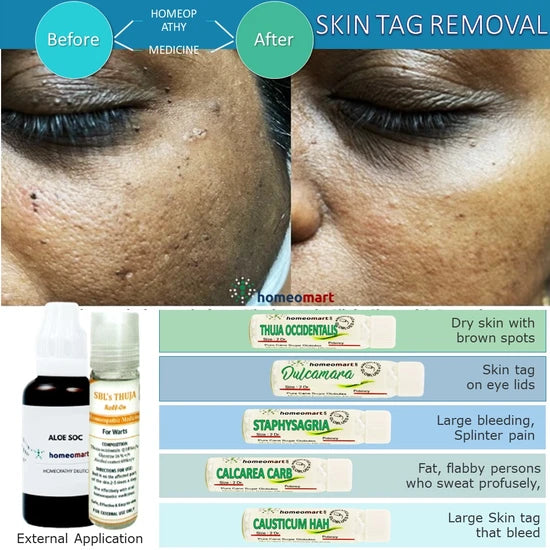 Renowned homeopath Dr. KS Gopi states that the best remedy depends on individual symptoms. Our Homeopathy Skin Tag Removal Kit offers targeted treatment with internal and external applications.