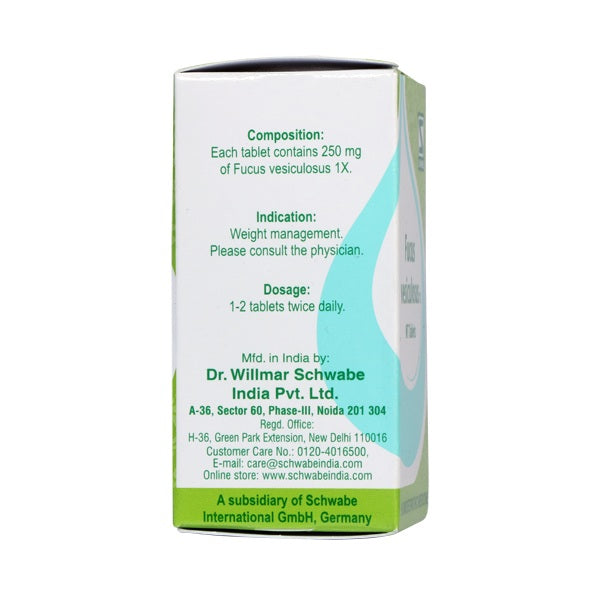 Fucus Vesiculosus 1x Tablets offer a natural homoeopathic remedy for managing obesity, non-toxic goitre, and thyroid-related weight issues. This unique formulation contains iodine, which acts as a stimulant for the thyroid gland, aiding in the reduction of thyroid enlargement commonly seen in individuals with weight concerns.