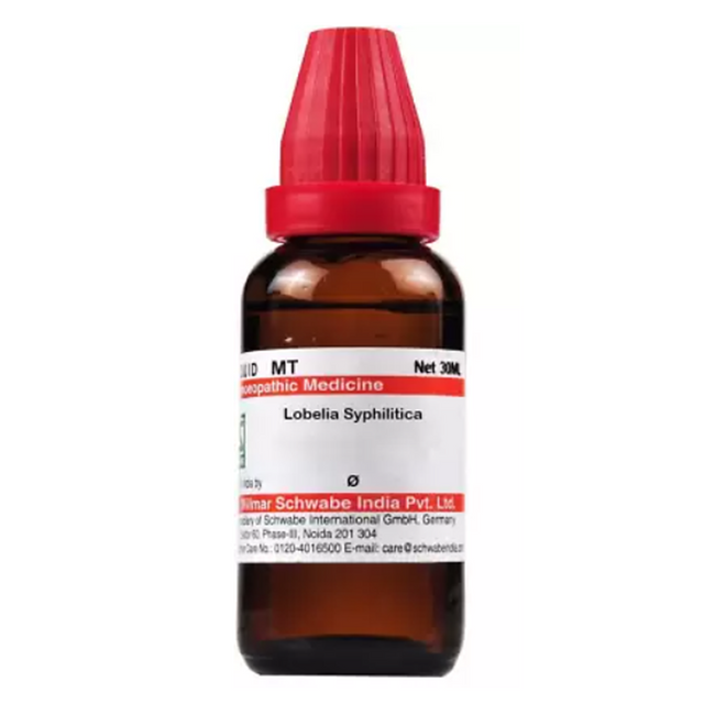 Take 10 drops of Dr. Willmar Schwabe India Lobelia Syphilitica Mother Tincture diluted in half a cup of water thrice a day or as directed by the physician.
