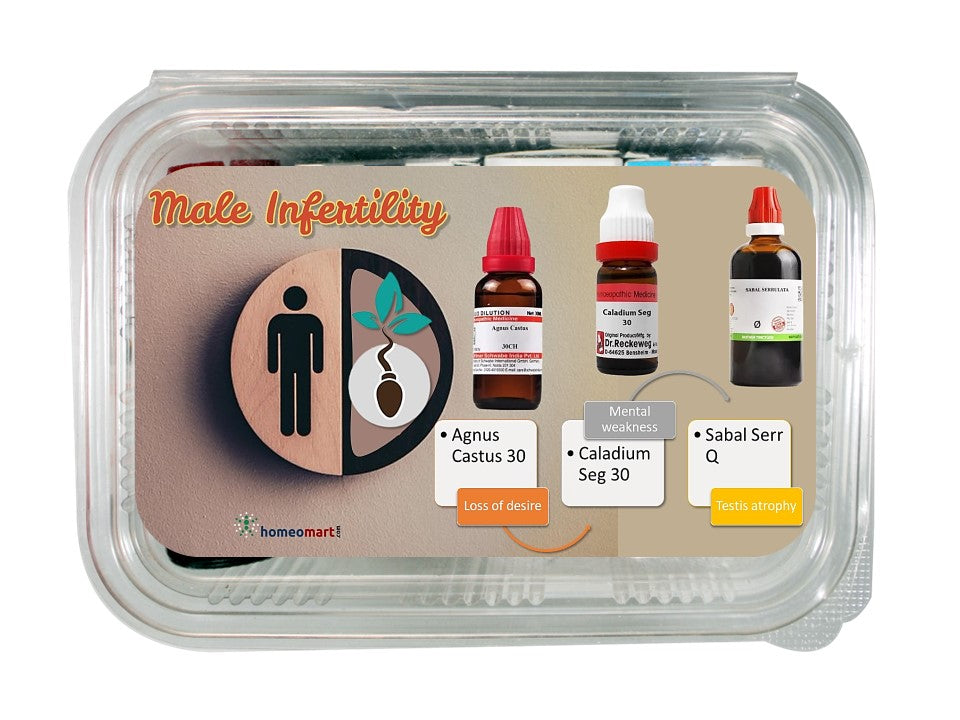 Caladium Seg 30 is another medicine for infertility in males with erectile dysfunction. Caladium is the best choice for impotency with mental depression. As per psychiatry dot org having anxiety and depression may contribute to infertility and the distress of infertility and treatment often leads to anxiety and depression. According to a 2018 study, when a sperm-giving partner has severe depression, pregnancy rates drop slightly and researchers think that may be because depression can make people less interested in sex. Other symptoms: Sexual desire is present but the genitals are relaxed with weak erections. Relaxation of the penis during excitement. There is no emission and no orgasm during embrace