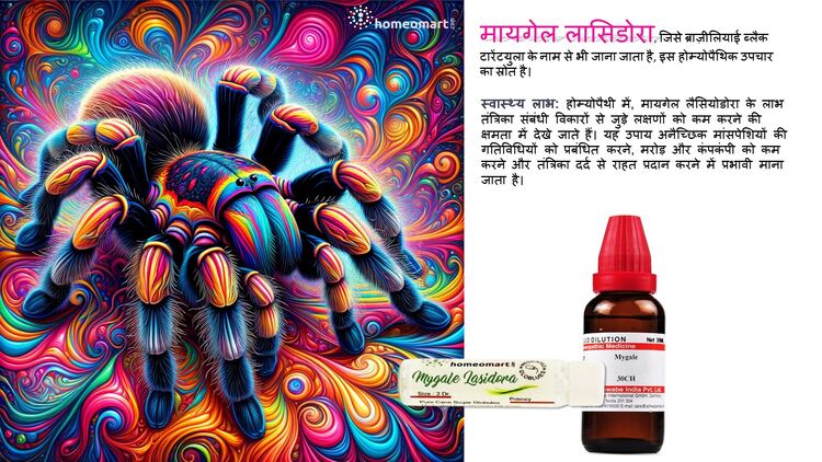 Safety and Side Effects: Homeopathic remedies, including Mygale Lasiodora, are generally considered safe when used in correct dilutions. However, individual responses can vary, and it is crucial to use this remedy under the guidance of a qualified homeopath. Specific side effects are not widely documented, but misuse or incorrect dosage can potentially lead to adverse effects.