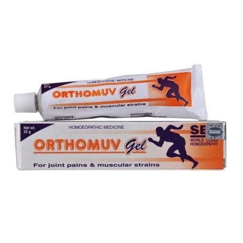 SBL Orthomuv Gel is indicated for Sprains, Muscular Strain, Ecchymosis, Backache, Joint Pains, and Stiffness.