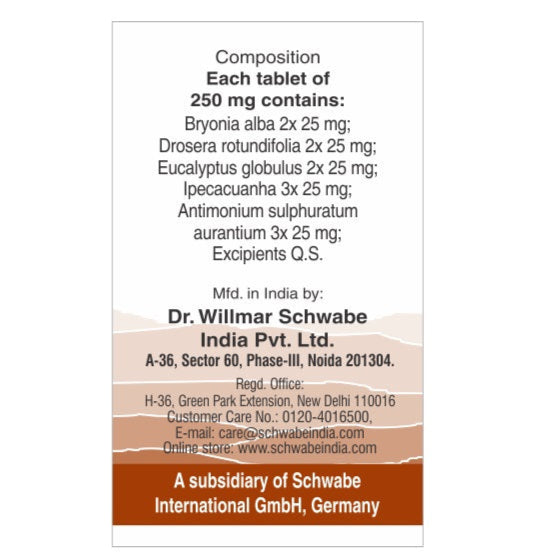 Each 250 mg tablet contains a unique blend of homeopathic ingredients designed to target different aspects of chronic cough: