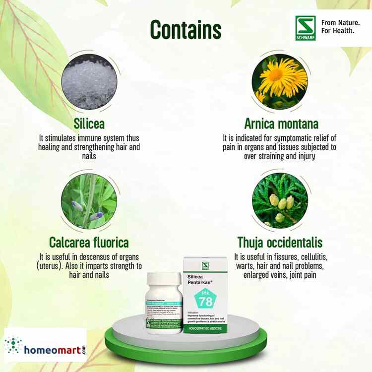 Schwabe Silicea Pentarkan is an exceptional homeopathic remedy designed to address post-partum symptoms in new mothers. It effectively alleviates ailments such as hair loss, brittle nails, and stretch marks on the abdomen, ensuring a smoother recovery period.