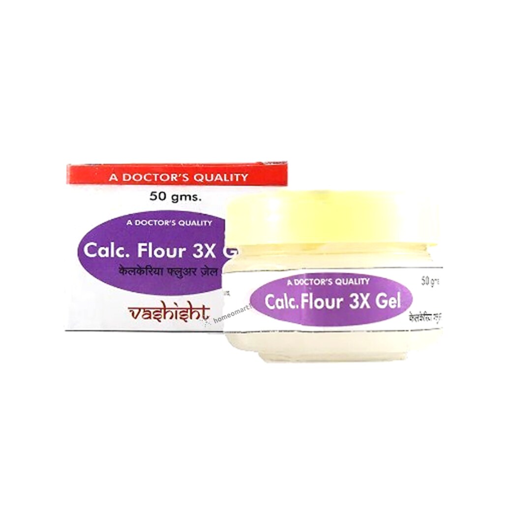 Product Description- Vashisht Calcarea Fluorica 3X Gel This homeopathic Bio-Chemic remedy is prepared from pure cell salt extracts. Calcarea fluorica is a constituent of the bones and the tooth enamel. It is contained in the epidermic (outermost layer of the skin) cells and in the elastic tissues. It suits flabby constitution and extensively used for varicose. osteomyelitis (inflammation of the bone), bone fistulas, periostitis, formation of exostoses (benign growth projecting from the bone surface), hyperkeratosis, induration (hardening) of glands and connective tissue.