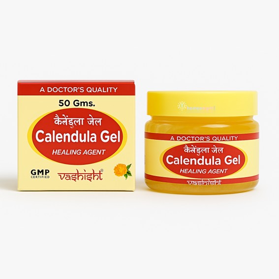 Vashisht Calendula Gel is a fast-absorbing, homeopathic healing gel designed to soothe, protect, and repair damaged skin. Infused with the natural goodness of Calendula and Aloe Vera, it provides moisturization, anti-inflammatory action, and fast healing for cuts, burns, wounds, ulcers, sores, abrasions, and fissures.