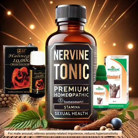 Wheezal Stimulant H Drops is a homeopathic remedy formulated to support male sexual health by addressing erectile and ejaculatory dysfunctions. It is particularly beneficial for individuals suffering from conditions such as thyrotoxicosis, pelvic trauma, spinal cord injury, and post-prostate gland surgery complications. This nervine tonic enhances male arousal and helps restore sexual function naturally.