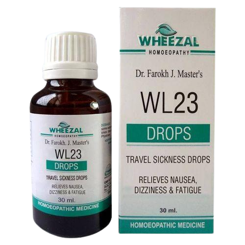 Wheezal Wl 23 Travel Sickness Drops contains homeopathic ingredients like Hayoscyamus., Tabacum, Nux. Vom., Aethusa., Cocculus. Ind Colchicum. Aut., Ipecac., for treating motion sickness