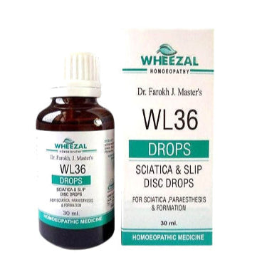 Wheezal WL 36 Sciatica and Slip Disc Drops for Sciatica, Paraesthesias. Dr.Farokh J Master's formulation