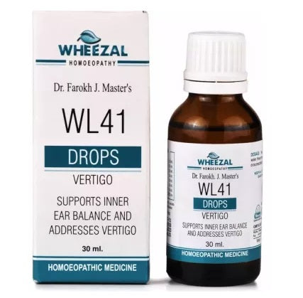 Wheezal WL-41 Vertigo Drops is a proprietary homeopathic formulation designed to relieve symptoms of vertigo, dizziness, motion sickness, and balance disorders. Developed under the guidance of renowned homeopath Dr. Farokh J. Master, this remedy targets inner ear imbalance, the most common underlying cause of vertigo.