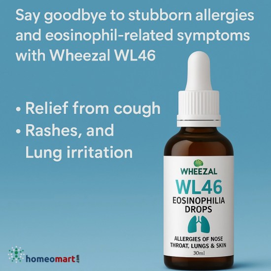 Wheezal WL46 Eosinophilia Drops is a trusted homeopathic remedy that addresses multiple forms of allergy with a gentle and effective approach. It helps reduce eosinophil-related symptoms and enhances respiratory and skin health naturally, without side effects.